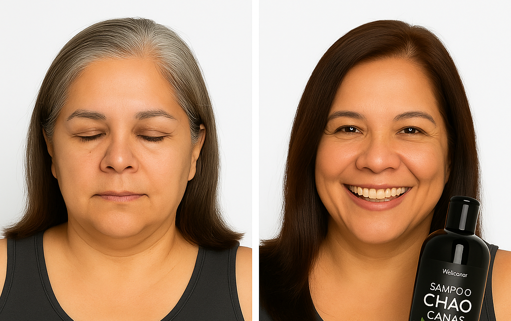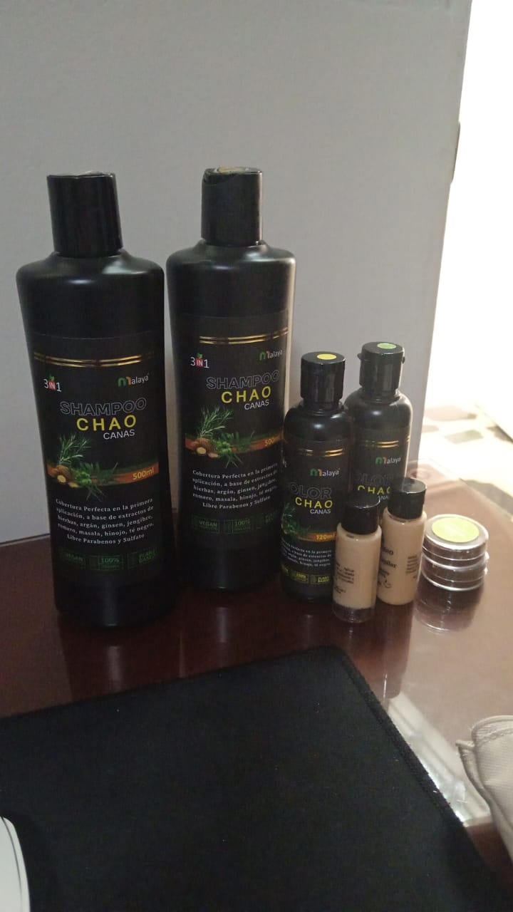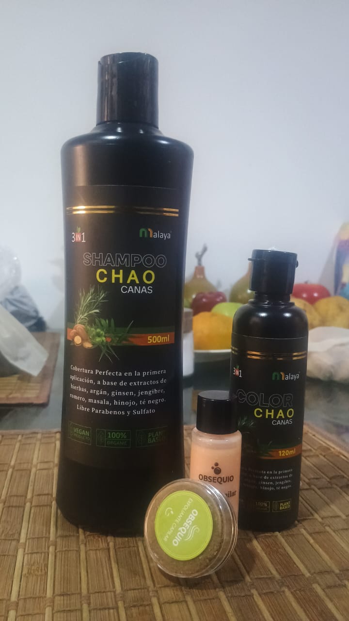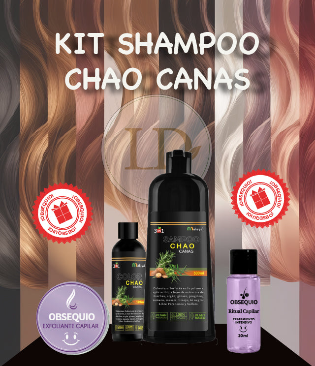Tu cabello recupera su color natural sin tintes ni químicos agresivos.Con el Kit Chao Canas, dile adiós a las canas y dale la bienvenida a un look más joven, fuerte y saludable.